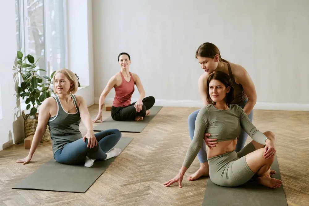 Eine Yoga-Lehrerin zeigt uns die Übungen.